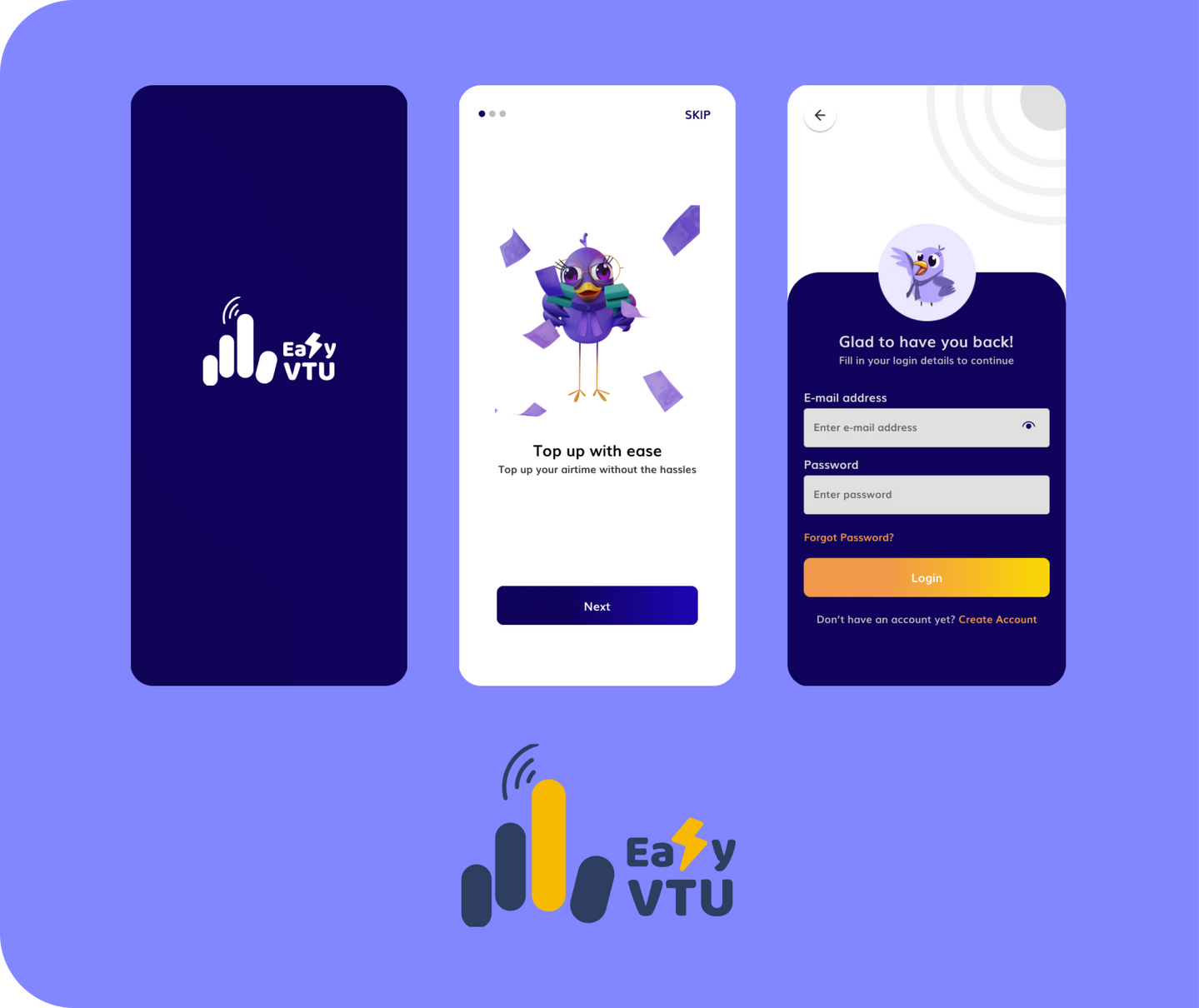 EasyVTU is a virtual top-up mobile application that allows users top up their airtime, cable, mobile data, and electricity with ease